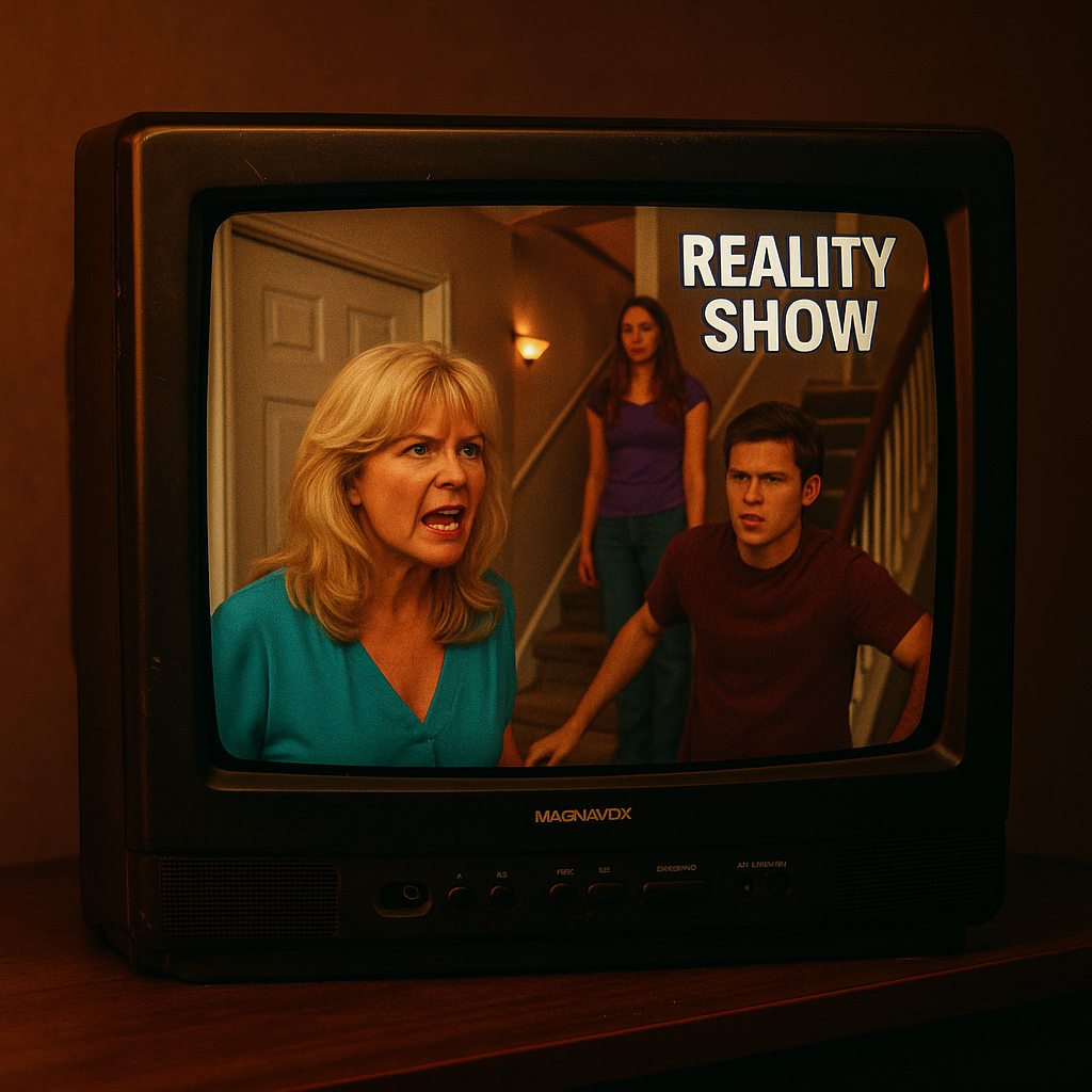 Quan ja es pensa que quedarà endormiscat davant el televisor queda garratibat davant un canal en el que surt una dona que crida estirant el coll des del rebedor de casa seva en direcció al capdamunt de les escales del primer pis. De fons sona una música eixordadora, que intueix deu ser el focus del conflicte. Acte seguit tot de personatges surten a escena per racons i portes inversemblants i culpa de la música han de cridar més per parlar, bé més aviat per discutir. El programa, a la vegada, subtitula les seves paraules a fi de que els espectadors puguin entendre els diàlegs. El programa també esborrona part de la conversa per que sembli que no es pugui entendre les últimes lletres dels insults i camufla amb un xiulet les últimes síl·labes sonores que apareixen en els diàlegs; és una escena patètica però absorbent. Criden i fan més soroll per demanar que s’apagui la música i que pari el guirigall, criden des de dalt amb improperis per dir que no senten res, però tot plegat encara fa més soroll que la pròpia música inicial. El show li fa aparèixer un somriure als llavis.