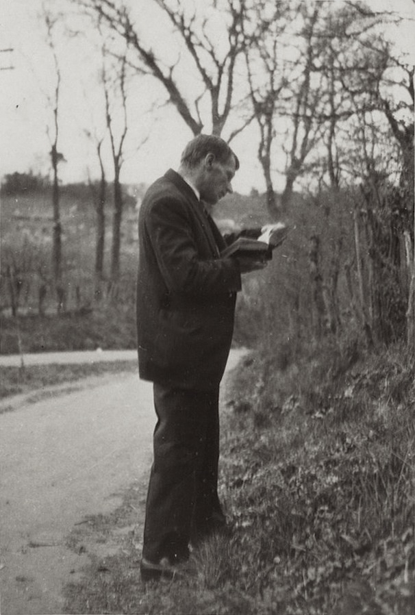 Ivor Gurney reading outdoors_ late 1930s